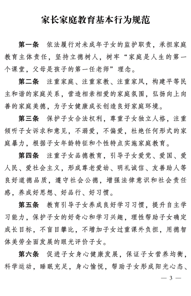 近日,全国妇联、教育部下发《关于印发〈家长家庭教育基本行为规范〉的通知》,对 2004 年制定的 《家长教育行为规范》 进行了修订完善。正值开学季,家长朋友们,一起来对照学习吧!祝各位家长和孩子新学期快乐!