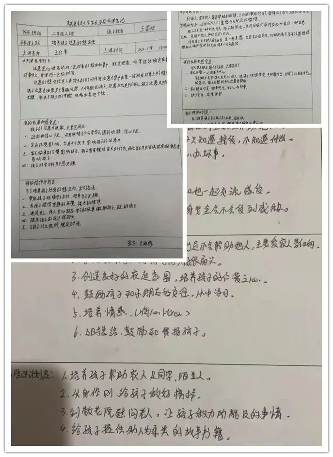家庭教育,是家长与孩子共同成长的过程。听完直播课,家长们收获多多,撰写听课笔记,并根据实际情况,制订自己的陪伴计划。
