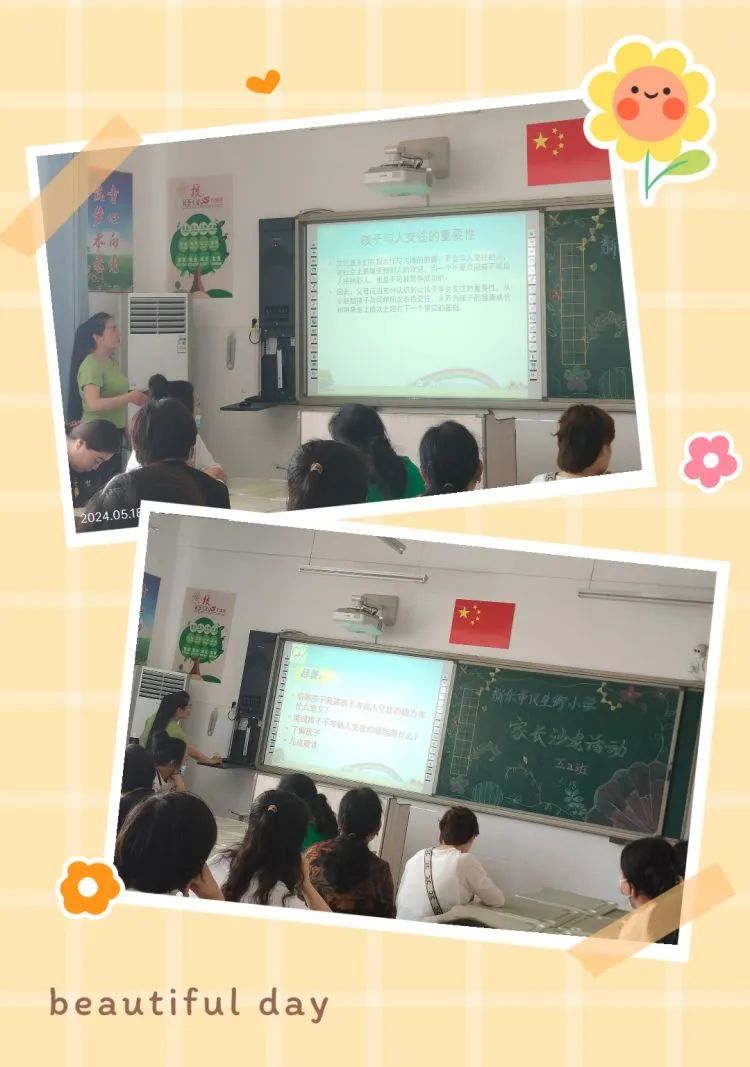 五年级的沙龙活动以《提高孩子的人际交往能力》为主题,部分班级由优秀家长教师主持活动,如五(2)班,王子卓妈妈用心带领大家进行了分享。
